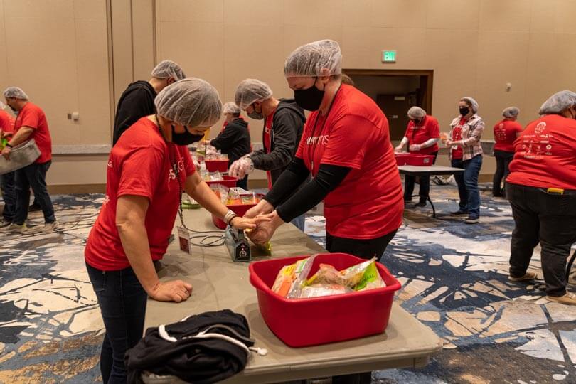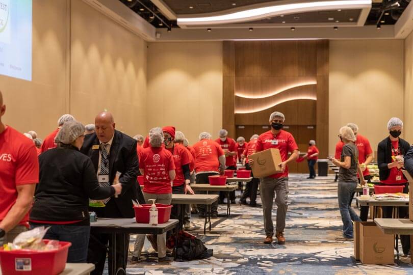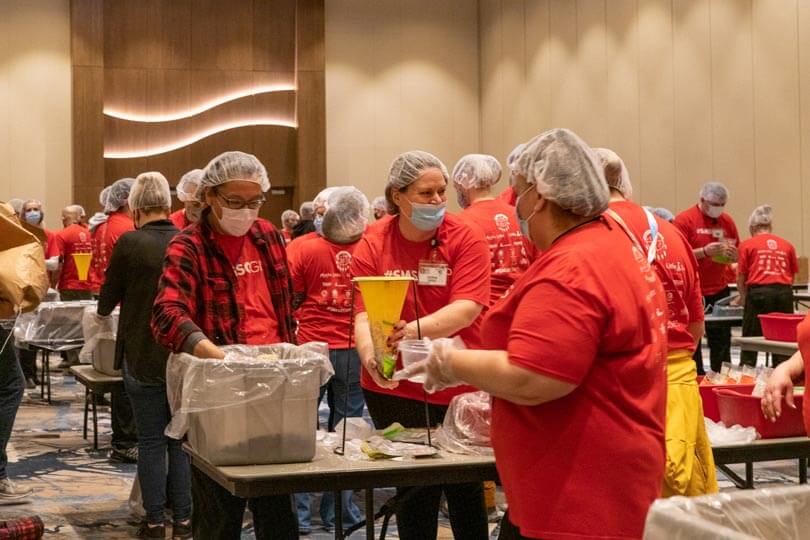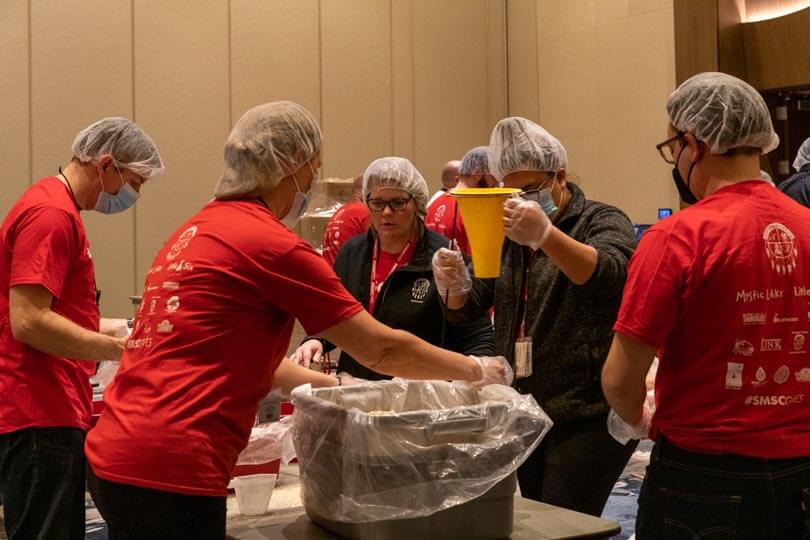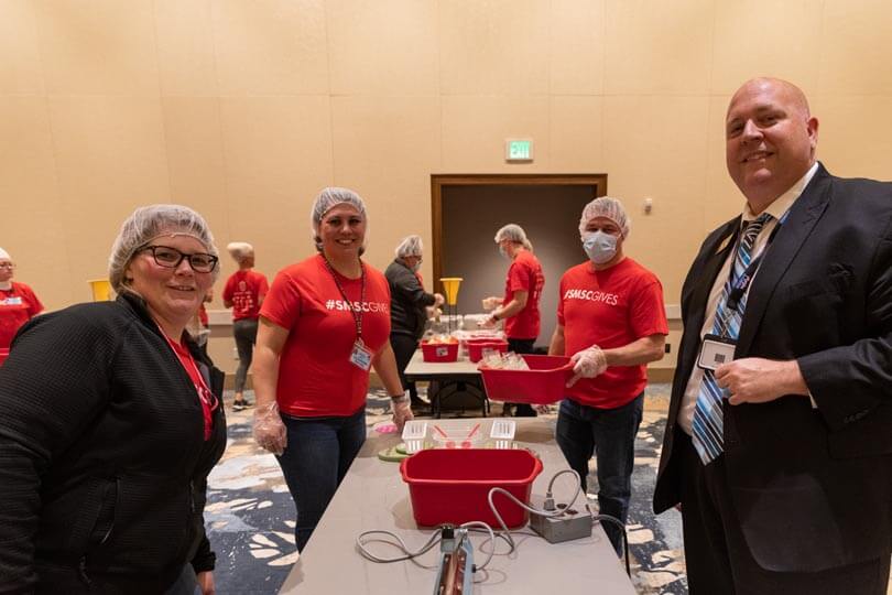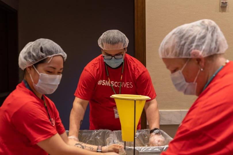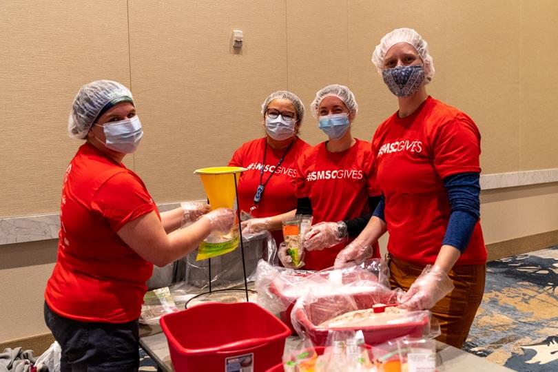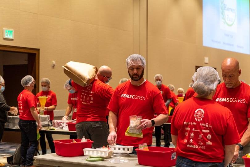 In early March, #SMSCgives volunteers helped to address food insecurity by packing meals for Harvest Pack, a hunger relief nonprofit. The group successfully packed 30,000 meals—exceeding the goal of 27,000 meals. The Community Action Partnership (CAP) Agency helped distribute these meals to local communities in Scott, Carver, and Dakota counties. Thank you to all who volunteered and made a difference!