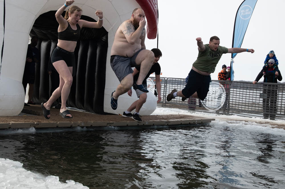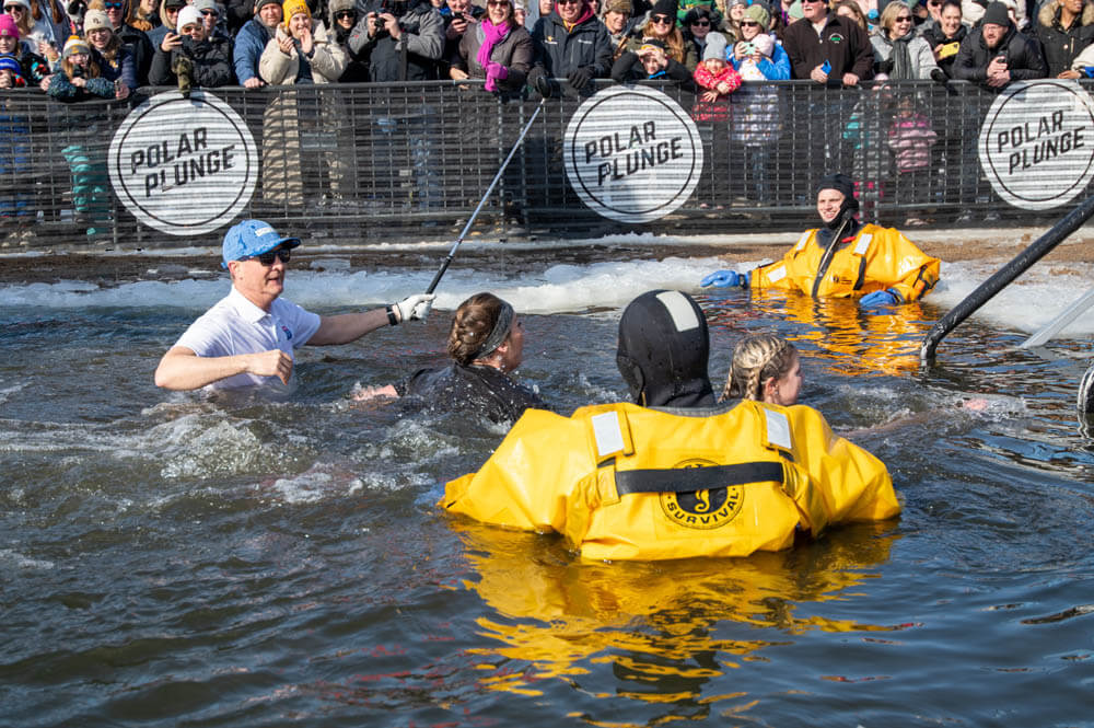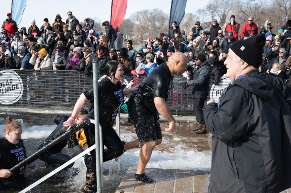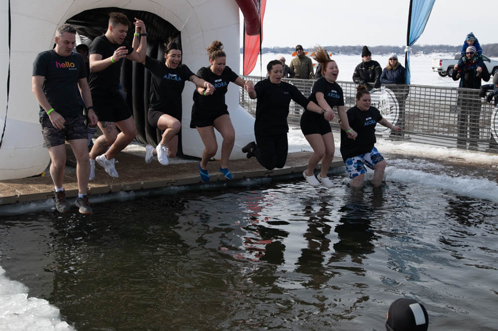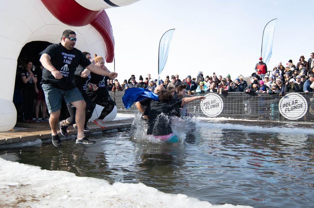 SMSC employees and team members jumped into the icy waters of Prior Lake at the Polar Plunge on February 18.