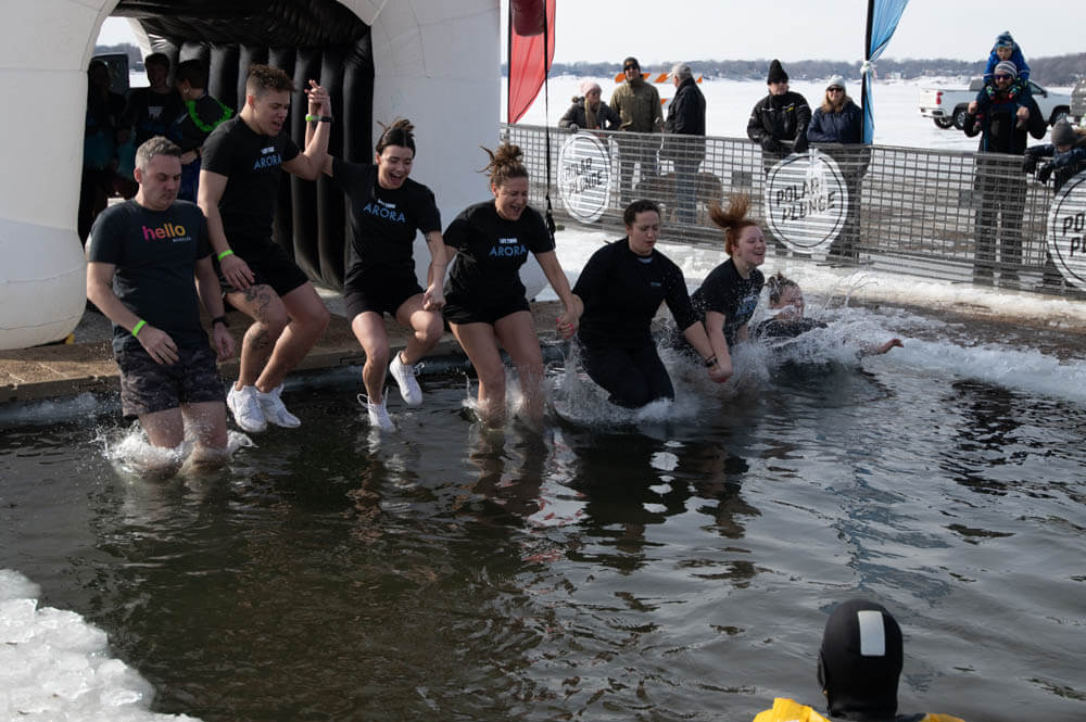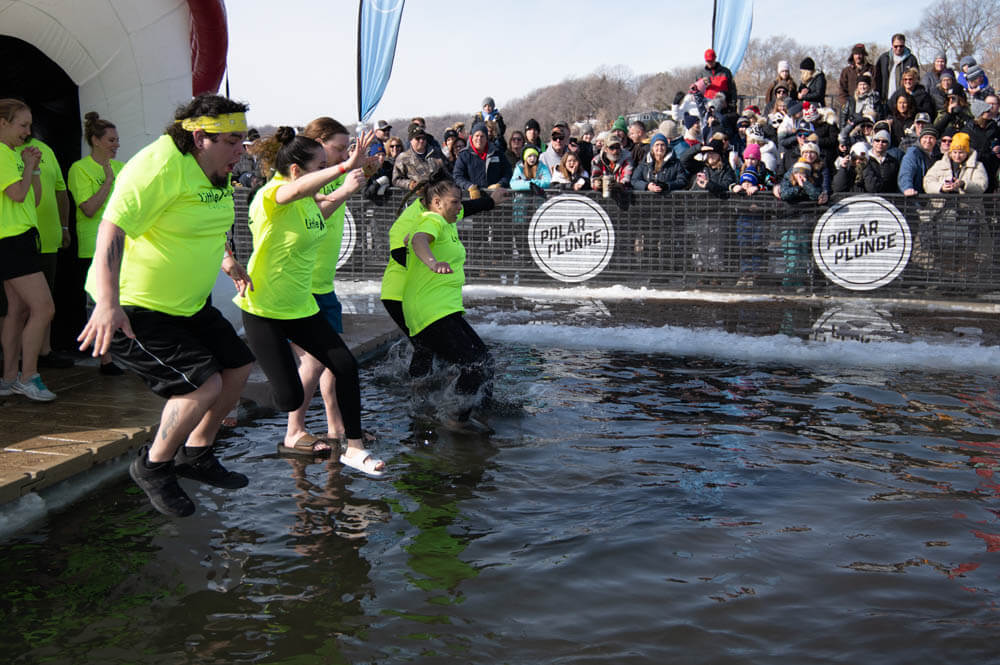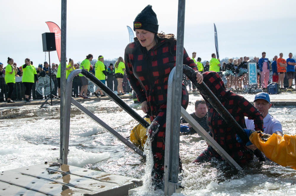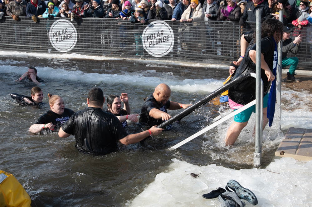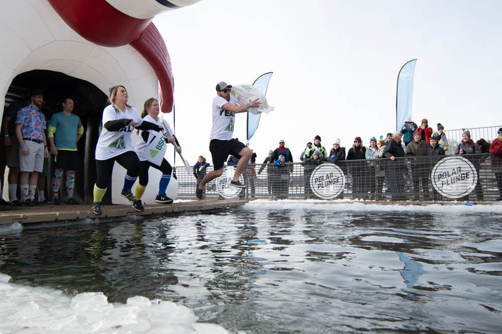 SMSC employees and team members jumped into the icy waters of Prior Lake at the Polar Plunge on February 18.