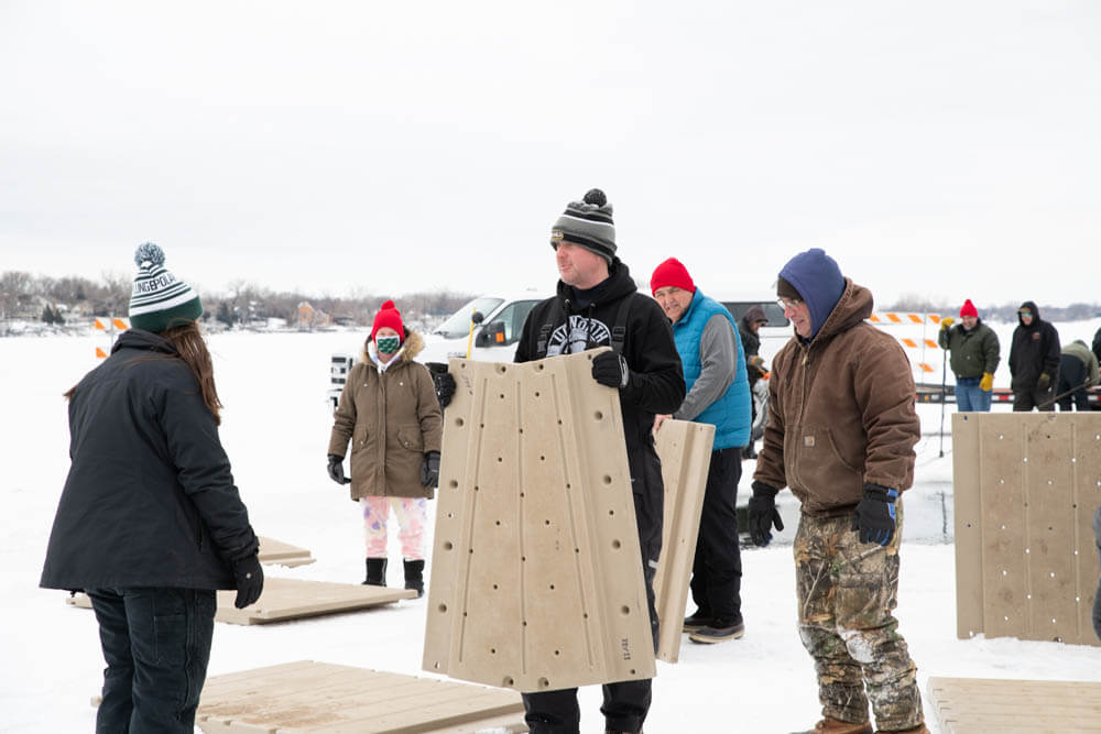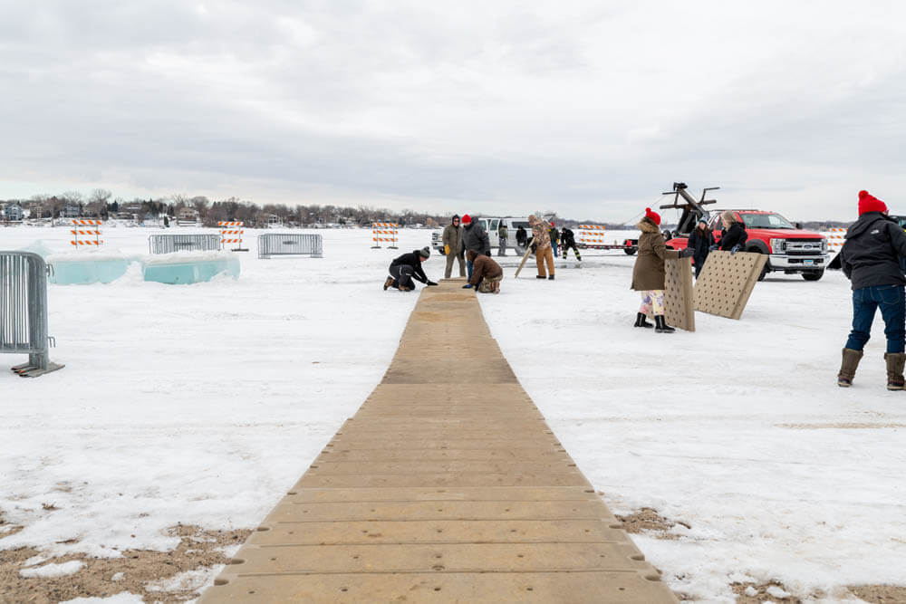 In mid-February, several SMSC employees and team members braved the wind and cold to help set up for the 2022 Polar Plunge held at Sand Point Beach in Prior Lake. The extreme winter event supports the Special Olympics of Minnesota. #SMSCgives volunteers assisted with a variety of tasks to prepare for the event, including helping to set up heated tents, docks, banners, and barricades, as well as organize incentives and merchandise.
