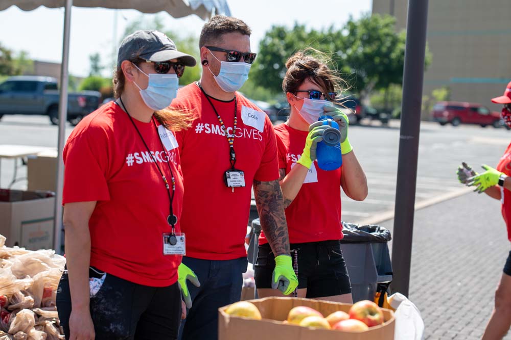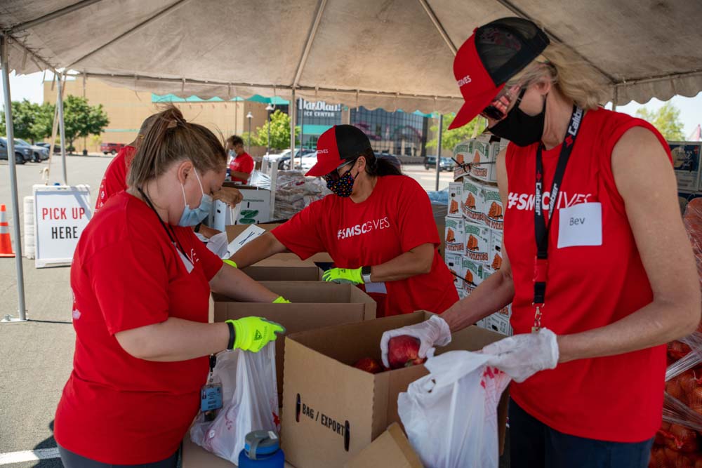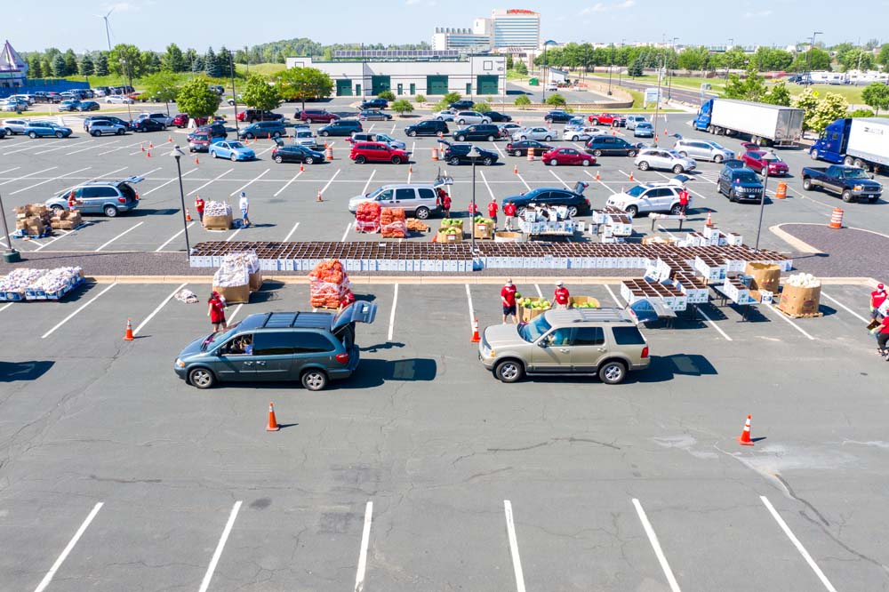 On a warm mid-June afternoon, the SMSC and the CAP Agency played host to a traveling farmers market, where pallets of potatoes, onions, apples, and other donated produce filled the parking lot at Playworks. Dozens of cars were lined up, ready to accept a box of fresh-grown fruits and veggies to help keep their cupboards stocked during this unprecedented time—a total of 2,052 people received produce! To date, almost 50 free drive-up farmers markets across the region have enabled hundreds of thousands of pounds of fresh produce to be distributed to people in need.